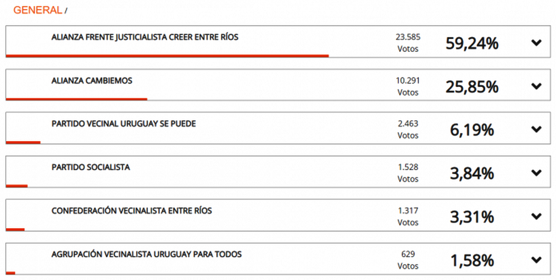 Resultados en Concepción del Uruguay con el 99% de las mesas escrutadas.