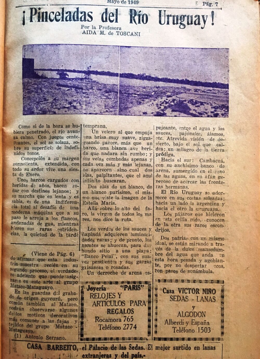 (1) Texto extraído de la revista “Ideal” órgano oficial del Club Colegial “Luis María Silva” de la Escuela Normal en su Número 2 de mayo de 1949. Se ha respetado totalmente el texto y la puntuación del original.