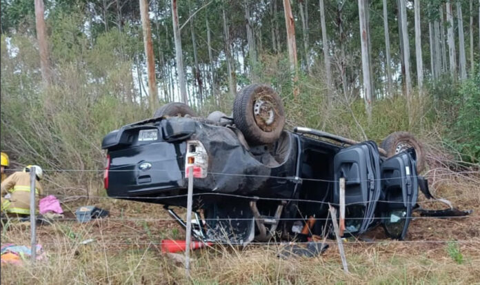 Como se había adelantado en 03442, este miércoles pasadas las 8 horas, personal del Puesto de Control Vial Mabragaña, intervino por un siniestro vial grave sobre el kilómetro 186 de la Autovía “Gervasio Artigas”, donde un vehículo Ford Ranger que circulaba de sur a norte con dos ocupantes, despistó y volcó a varios metros de la cinta asfáltica.