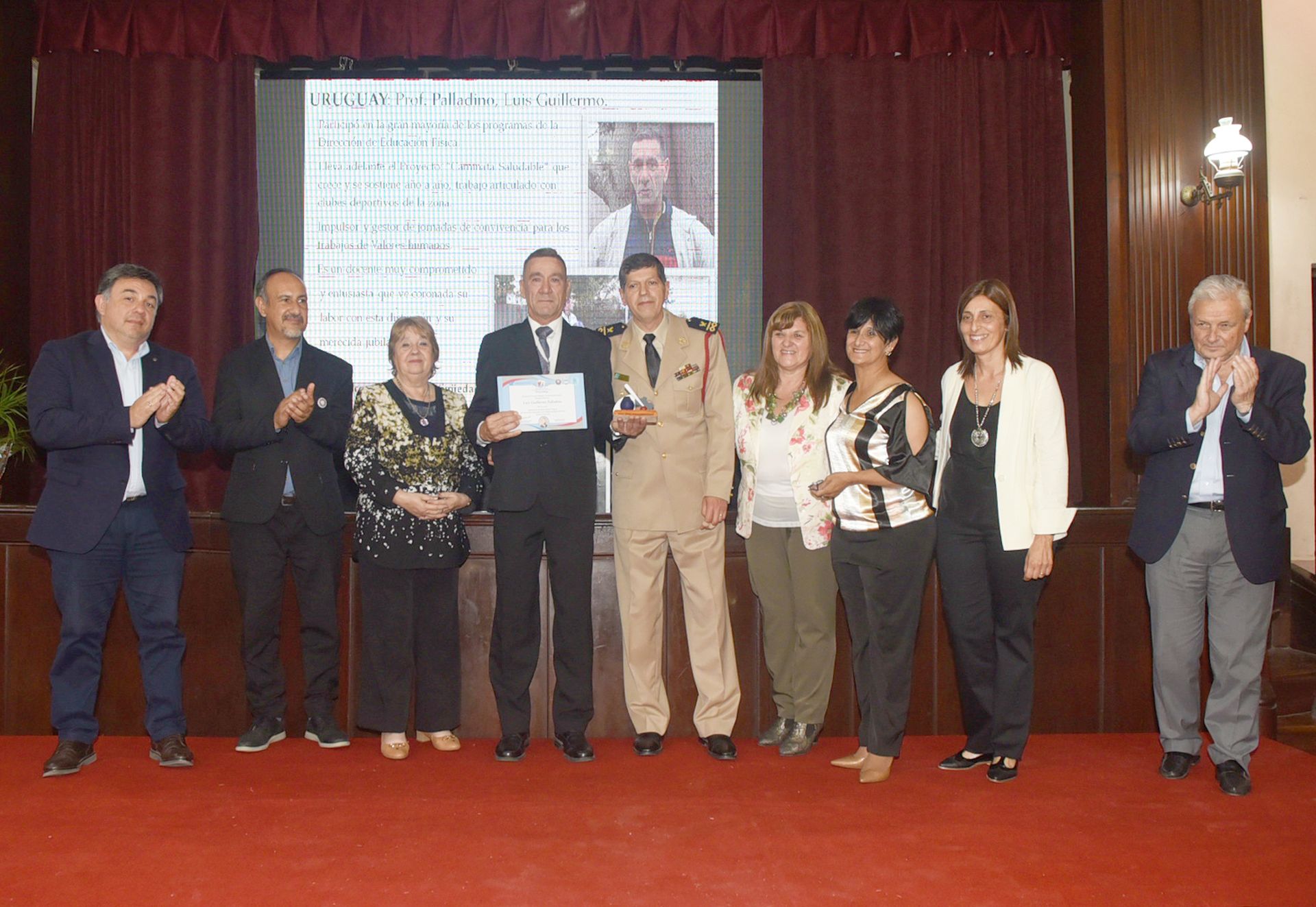Alumnos y docentes de la Escuela de Educación Técnica Nº 79 “José Benajamín Zubiaur” de Basavilbaso, creadores del premio obsequiado a cada uno de los docentes distinguidos, estuvieron presentes y también recibieron un reconocimiento de la Municipalidad de Concepción del Uruguay.