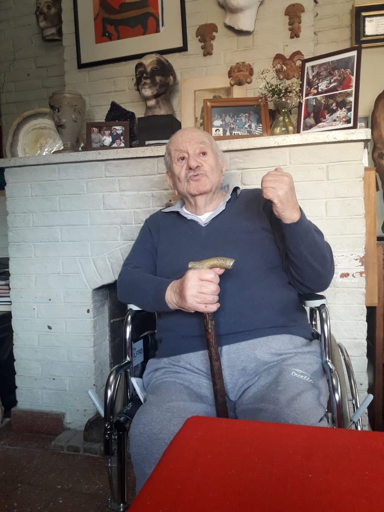 Mientras el domingo juega con la tarde, Pepe está sentado en su silla de ruedas en el corazón del living. El sol acaricia las ventanas de la esquina de su casa, a una cuadra de la plaza San Martín. Amablemente y cómo habíamos arreglado en la semana, nos estaba esperando para charlar. Rodeado de fotos, piedras, libros, pinturas, cuadros y reconocimientos, nos repetirá varias veces: “Yo tuve una vida muy linda, hermosa, estuve casado con una gran mujer, pero se está haciendo muy larga”. Se lamenta de algunos achaques de los 95 años, cumplidos el 10 de agosto. Y nos confiesa: “El médico me dice Miguel sus problemas son los 95”. Pese a su falta de movilidad, la artrosis y dificultades para oír, su sentido del humor fluye varias veces. Se lo ve a gusto, con ganas de charlar.