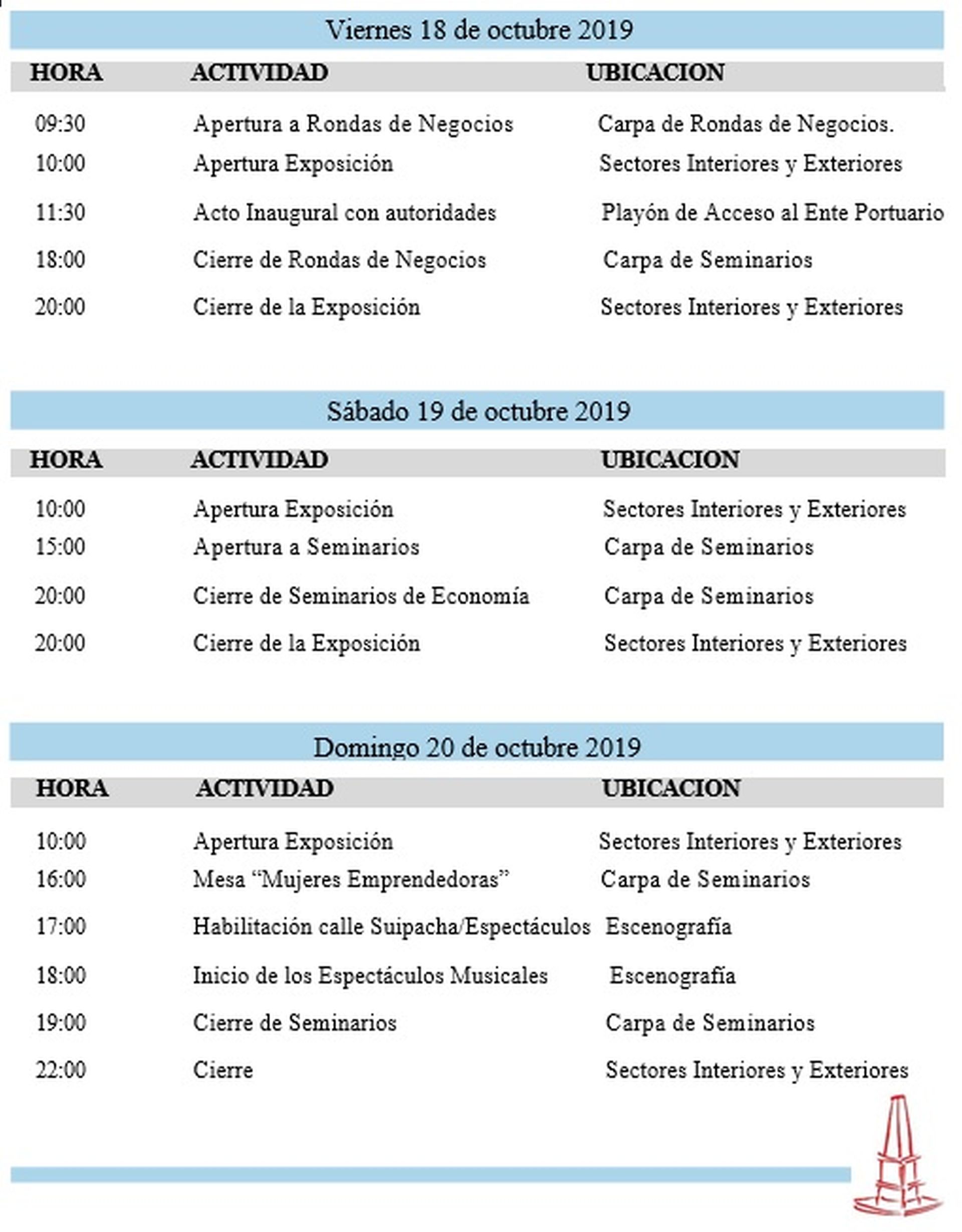 La Expo tendrá su ingreso por el acceso principal a las oficinas del Ente Portuario, en Avenida Paysandú y se desarrollará desde el viernes según el siguiente programa: