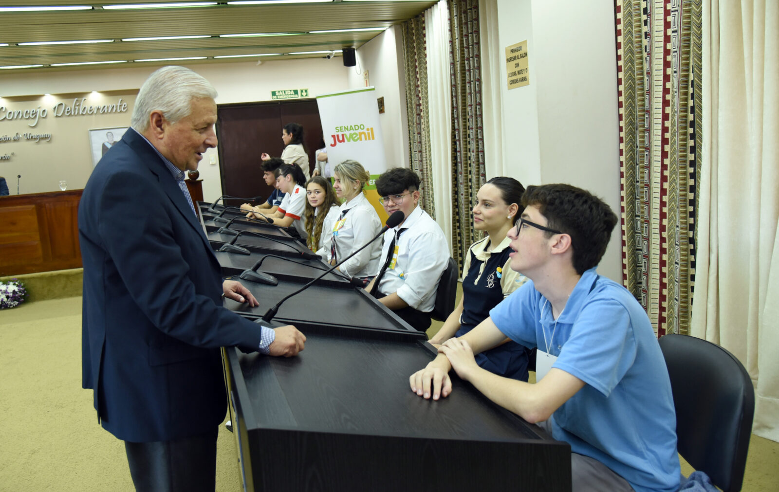 En el Concejo Deliberante, se desarrolló este viernes la instancia departamental del Senado Juvenil correspondiente al departamento Uruguay. Allí estuvo el intendente, José Lauritto, junto a la viceintendenta, Rossana Sosa Zitto; el senador Martín Oliva; la directora departamental de Escuelas, Marina Pagani; y las coordinadoras del Senado Juvenil, Eugenia Alasino y Claribel García.