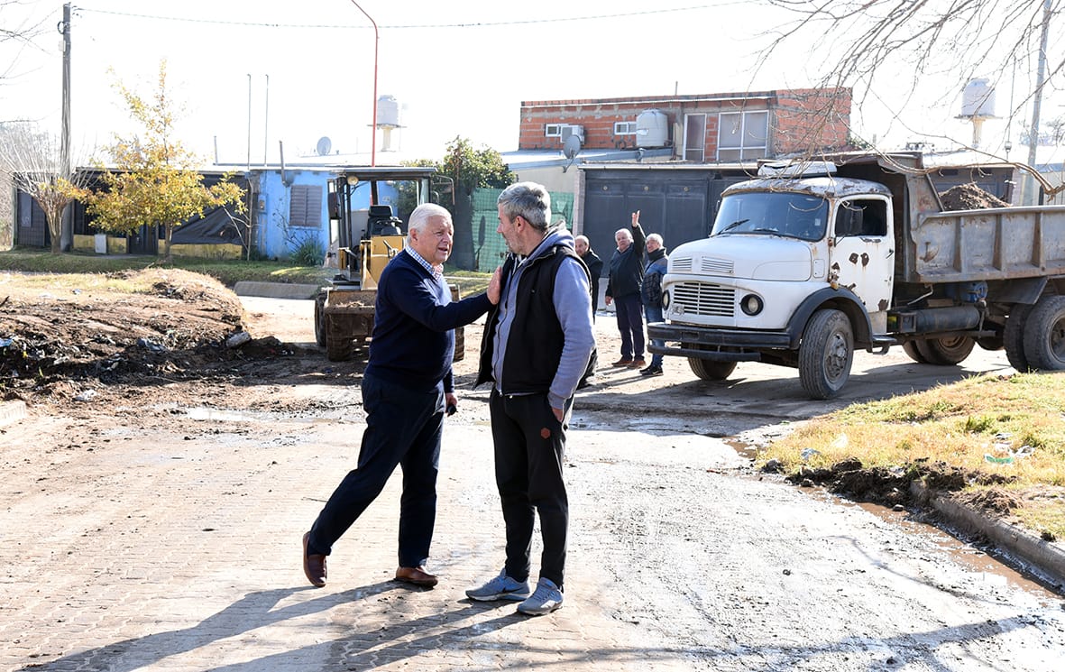 El despliegue incluyó dos máquinas cargadoras, tres camiones hidrogrúa, personal de la Dirección de Salud Ambiental para desratización, camión y personal del área Recolección para recolectar residuos sólidos urbanos, cuatro cooperativas, como así también personal y un camión cisterna del sector de Distribución de Agua Potable y Riesgo.