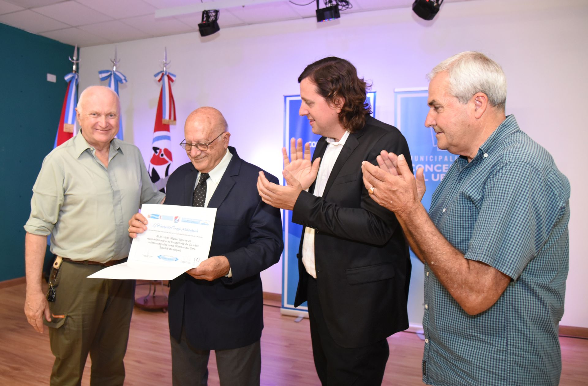 Luego de apreciar un video con palabras de sus integrantes y familiares, “Juanci” recibió de mano de las autoridades municipales, la Ordenanza 11.380 que lo declara formalmente con su meritorio reconocimiento.