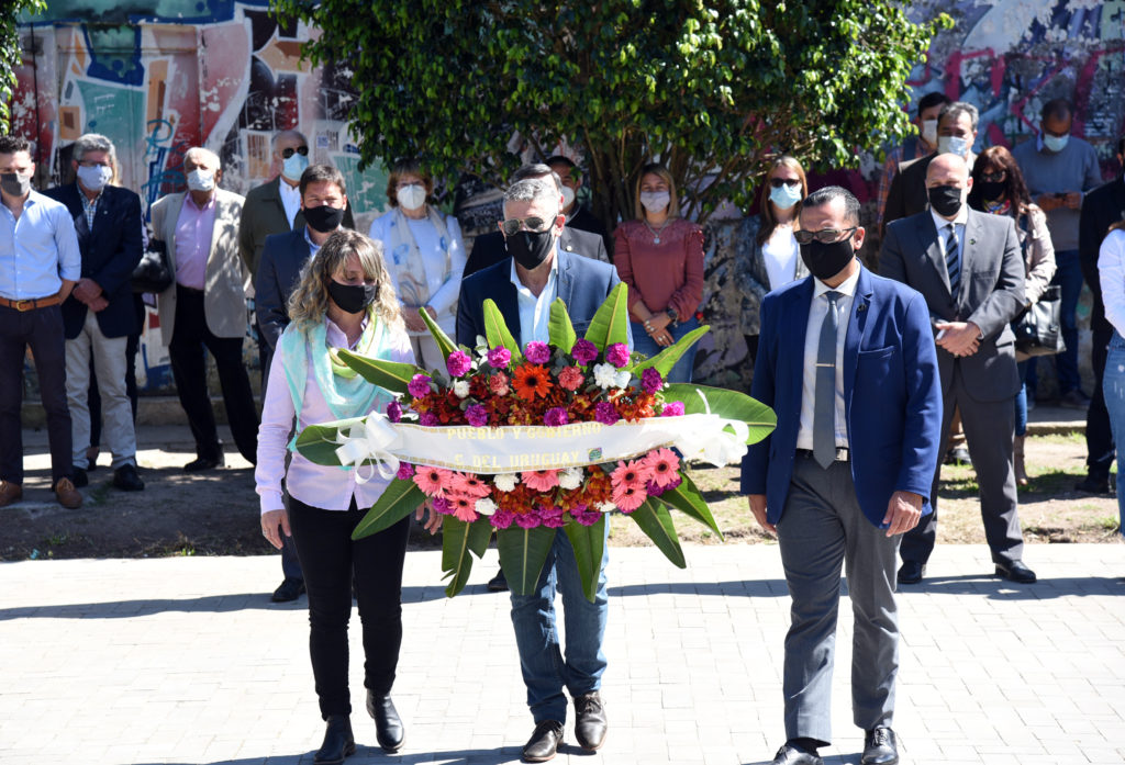 La ofrenda del Palacio San José fue realizada por el presidente de la Asociación de Ex Alumnos del Colegio, Pedro Fruniz; y la vicerrectora Institucional de UCU, Georgina Vierci.