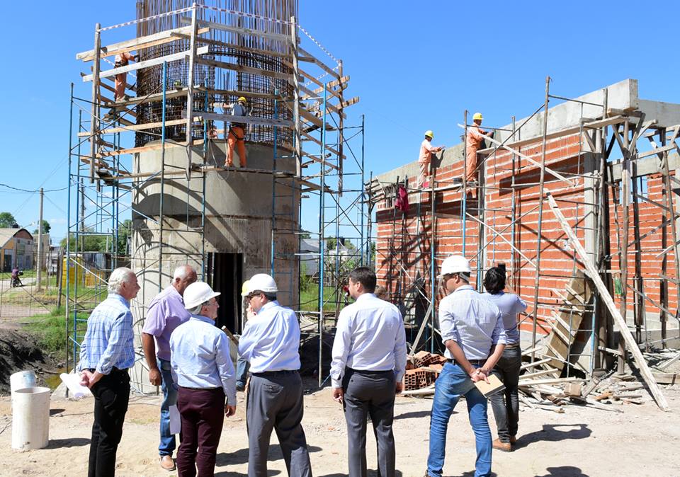 Lauritto y Benedetto también estuvieron en el predio detrás del cementerio en calle Tófalo, donde se construye un nuevo tanque elevado y una cisterna, que proveerá de agua a toda la zona oeste de la ciudad, allí donde los barrios María Auxiliadora, Bajada Grande y san Felipe, son los más afectados por la falta de presión de agua. Además, las cisternas van con sus estaciones de bombeo. Esto forma parte de la optimización de la red distribución y obras conexas, además del reacondicionamiento eléctrico del tanque elevado de barrio Santa Teresita, la construcción de otra cisterna allí, y la construcción de casi 14 mil metros de cañería, entre otras obras técnicas. Para esta segunda etapa del Plan Maestro se invierten casi $ 162 millones que aporta el Fondo Fiduciario Regional de Infraestructura Regional y que abonará la provincia.
