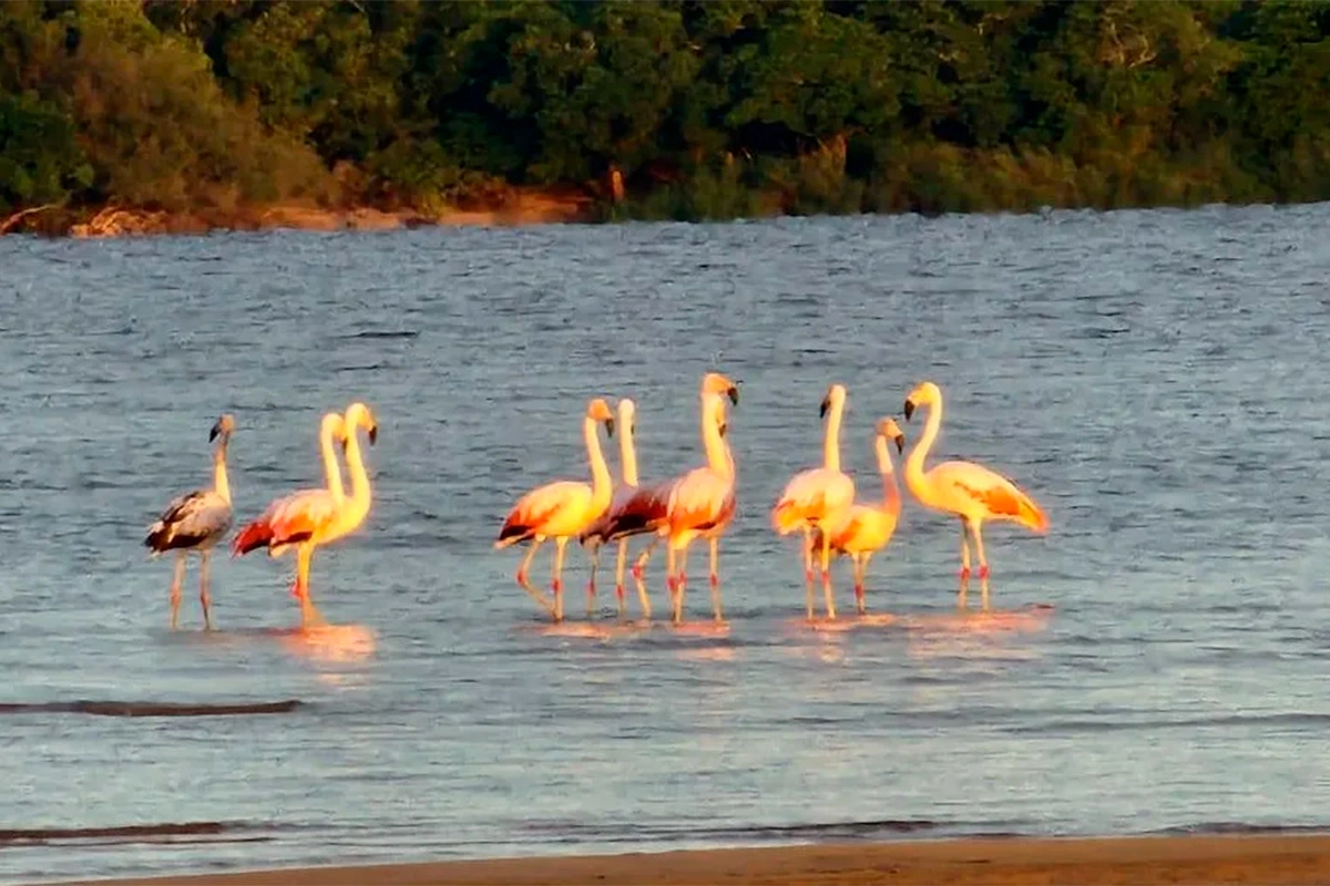 La presencia de flamencos en Isla Cambacúa, en Concepción del Uruguay, llamó la atención de propios y ajenos, durante la tarde de este sábado, debido a la extrañeza de la presencia de este tipo de especies en el río Uruguay.