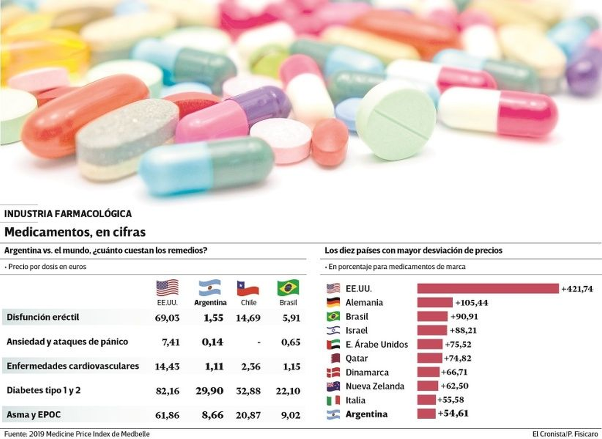 El acceso a los remedios es un tema de discusión no solo en Argentina, sino en todo el mundo. Su precio es uno de los principales focos de conflicto, en muchas ocasiones motivado por la falta de competencia entre los laboratorios productores y, dependiendo del mercado, en la facultad de las farmacias como forma de precios. De acuerdo al índice elaborado por la plataforma británica Medbelle, en el país se paga un 22% más que la media de costos globales. En cambio, el Viagra y el Canax están entre los más ‘económicos’ en Argentina en comparación con el resto de los relevados.