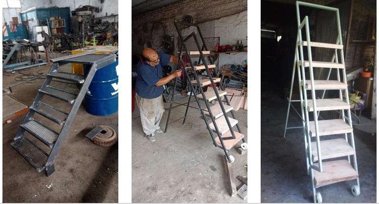 ¡Reconozco que es justo! En una primera etapa se arreglaron escaleras existentes y distribuyeron en diferentes sectores. Hoy están en proceso dos modelos de escaleras, realizadas en herrería municipal y otras por agente municipal que practica ese oficio. Un reclamo generalizado que hoy cumplimos en proveer.