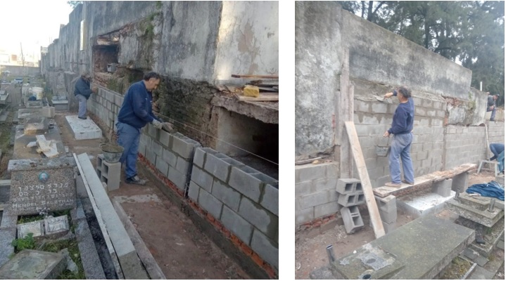 Continuamos realizando importantes obras de mantenimiento y reconstrucción dentro del predio de nuestro histórico Cementerio Municipal. Por ejemplo en los meses de junio y julio de desmanteló y reconstruyó el antiguo muro lindero con el Cementerio Israelita el cual, desde hace años, presentaba signos de deterioro con posibilidades de colapso. Fue un compromiso que asumimos con el Centro israelita en una reunión realizada oportunamente con el Dr. Martin Oliva y ya se ha concluido.