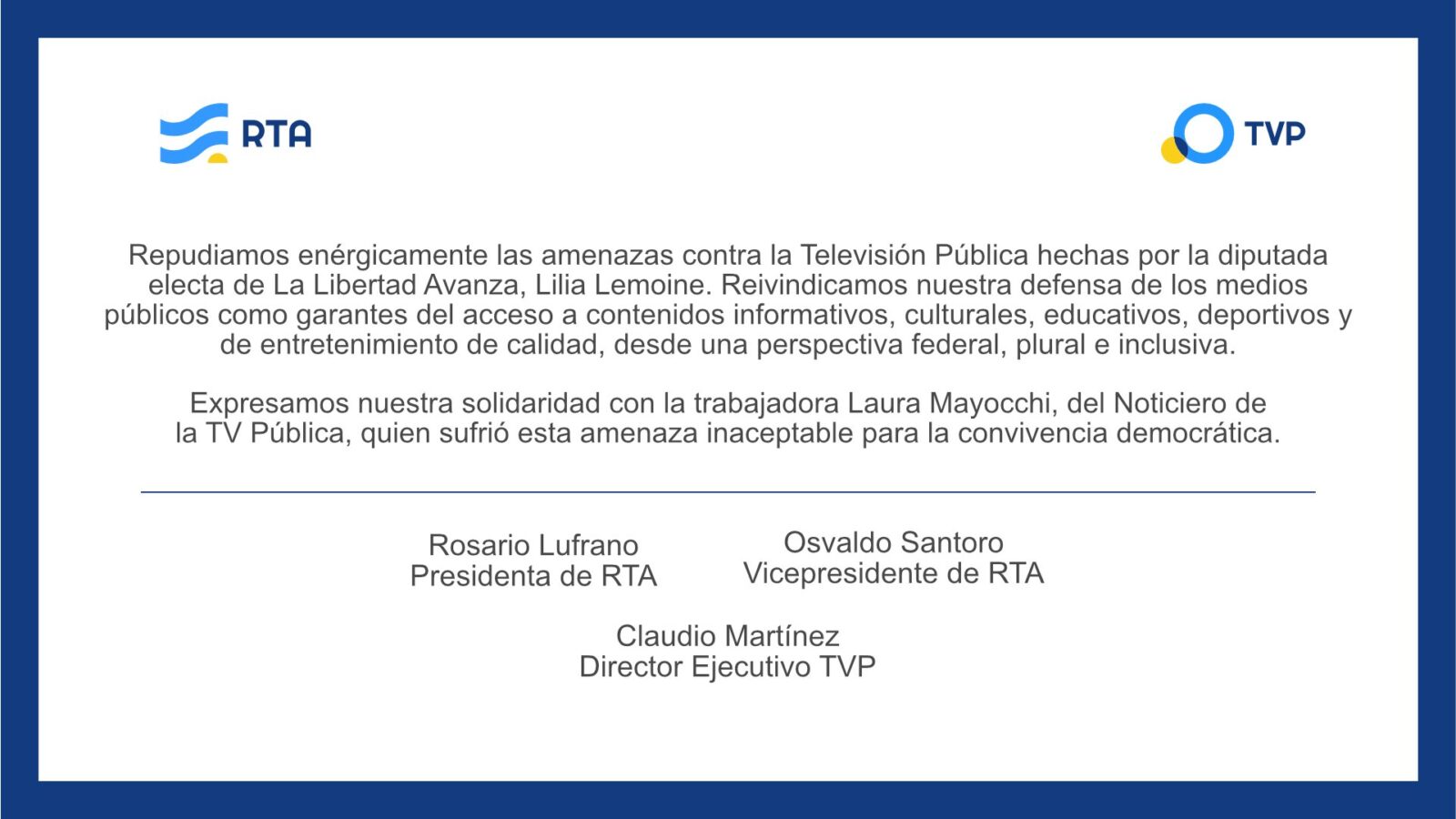Poco después, los trabajadores de la TV Pública emitieron un comunicado de prensa para condenar esas afirmaciones y advirtieron que Lilia Lemoine «desprecia la libertad de prensa y a los trabajadores».