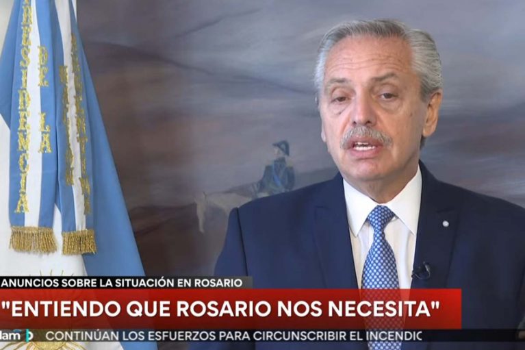 «Rosario nos necesita. Sé que sus fuerzas de seguridad son insuficientes para afrontar la solución del problema», sostuvo el Presidente en un mensaje grabado desde la residencia de Olivos, en el que anunció una serie de medidas para la ciudad.