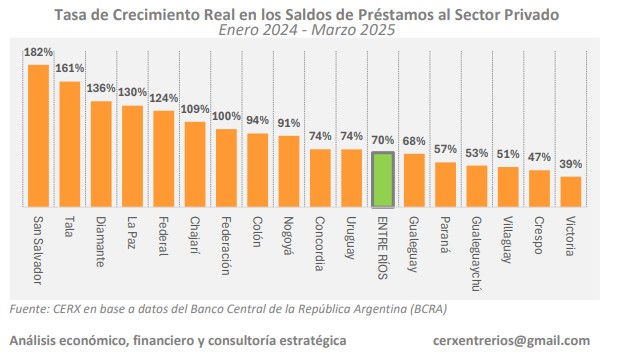 Desde que el crédito al sector privado volvió a crecer en Argentina durante 2024, muchas ciudades entrerrianas comenzaron a mostrar signos de reactivación financiera. Sin embargo, el ritmo de esa recuperación no fue homogéneo en todo el territorio. Mientras algunas localidades se consolidan como polos dinámicos, otras apenas logran seguir el pulso del nuevo ciclo económico.