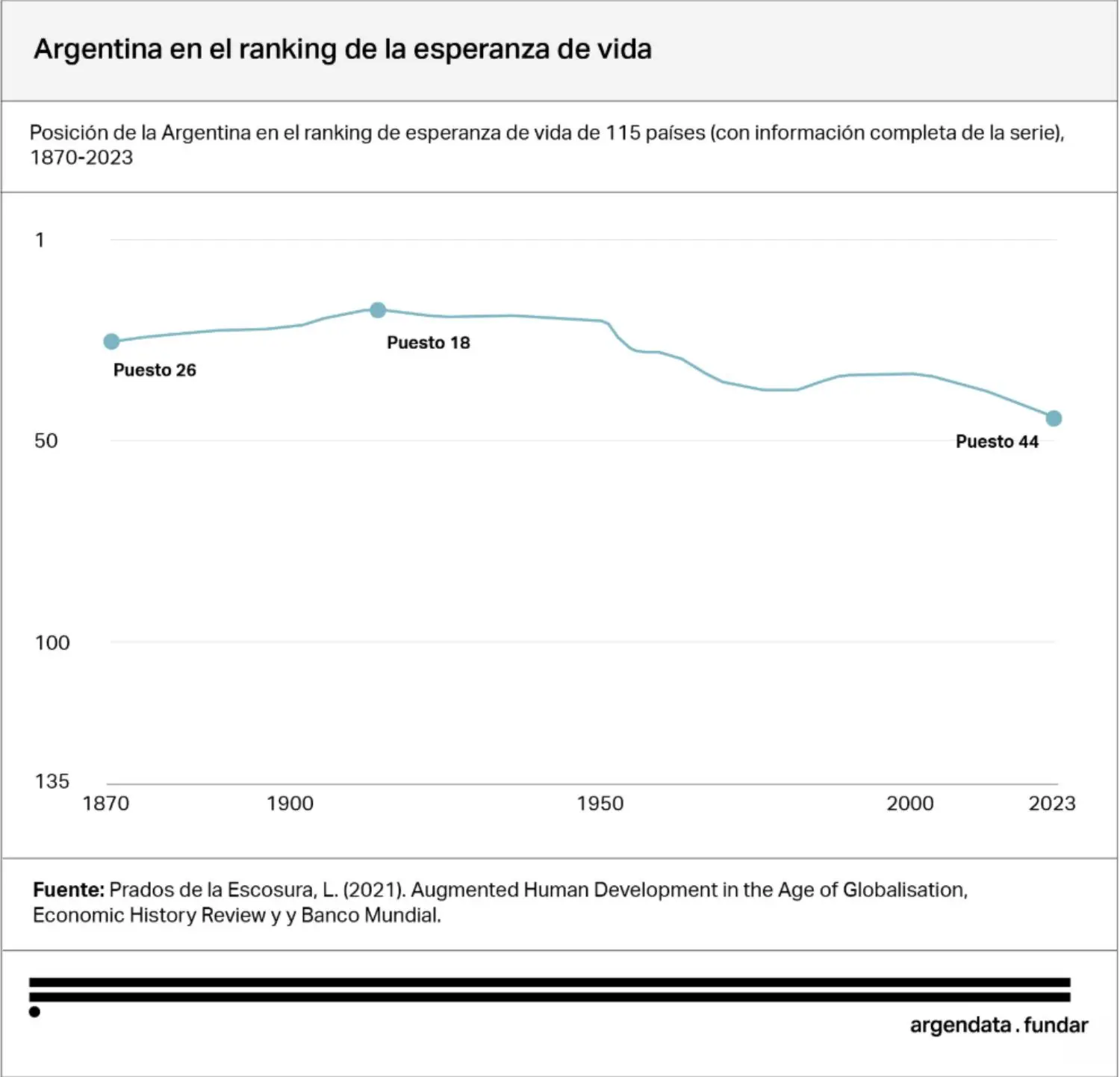 Por eso, nuestra posición en el ranking global descendió: pasamos de ostentar el puesto 18 en 1913, al 44 en 2023, entre 115 países de los que se tienen datos.