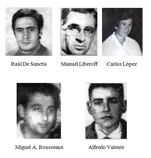 La Dirección de Derechos Humanos recuerda a los convecinos Miguel Ángel Rousseaux, Raúl René De Sanctis, Carlos López, Alfredo Daniel Valente y Manuel Liberoff. Durante mayo se cumple un nuevo aniversario de sus desapariciones por acción del Terrorismo de Estado.