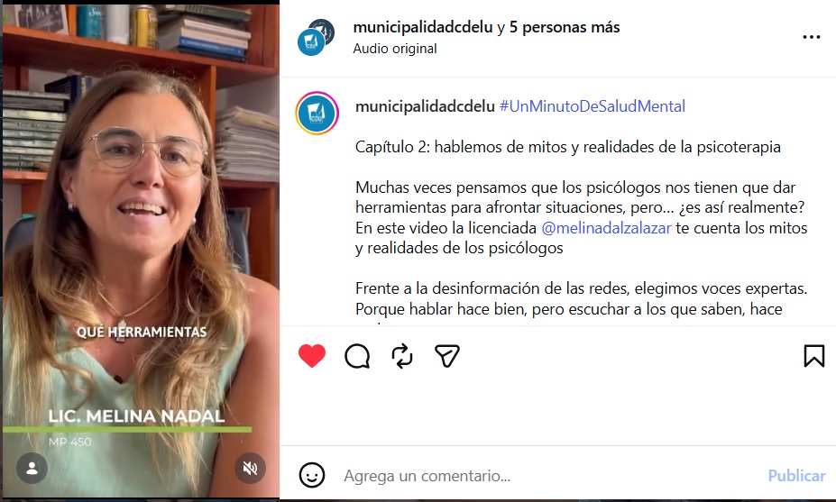 Luego del primer video que inició la campaña, “Hablemos de Ansiedad”, a cargo del Dr. Germán Bercovich, se estrenó esta semana el video “Hablemos de Mitos y realidades de la Psicoterapia”, protagonizado por la Lic. Melina Nadal.