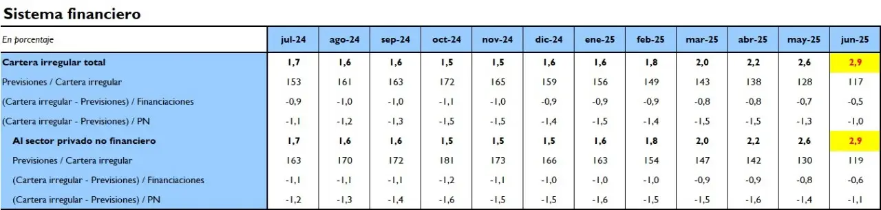La cartera irregular de los bancos siguió creciendo en junio, antes de todo el descalabro de la política monetaria generado por los errores del equipo económico. La mayor dificultad está en afrontar los créditos personales y el pago de la tarjeta de crédito. Las empresas empezaron a mostrar dificultad en la cadena de pagos.