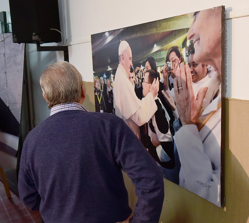 La muestra, llamada «Encuentro con Francisco» está organizada por “Casa Común” y Surco de Esperanza y consiste en 33 imágenes del fotógrafo Víctor Bugge registradas en Roma durante la Semana Santa del 2014 y el llamado “Domingo de los cuatro papas”.