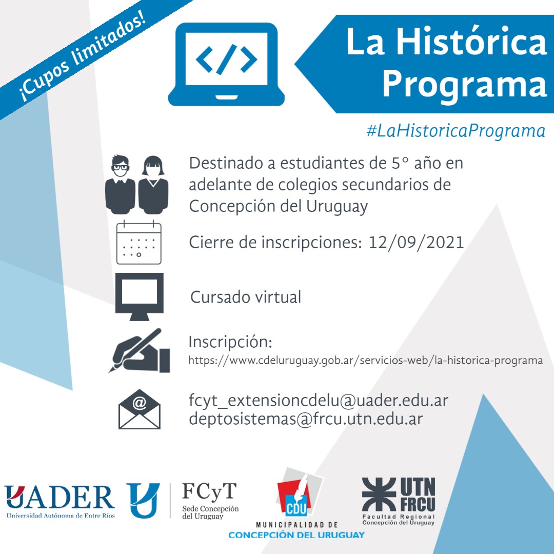 La municipalidad, lanza una nueva convocatoria para incentivar el mundo de la programación. Esta vez estará destinado a alumnos avanzados del secundario que deseen introducirse y conocer el mundo de las tecnologías y la programación. Se realiza en conjunto con UADER y UTN.