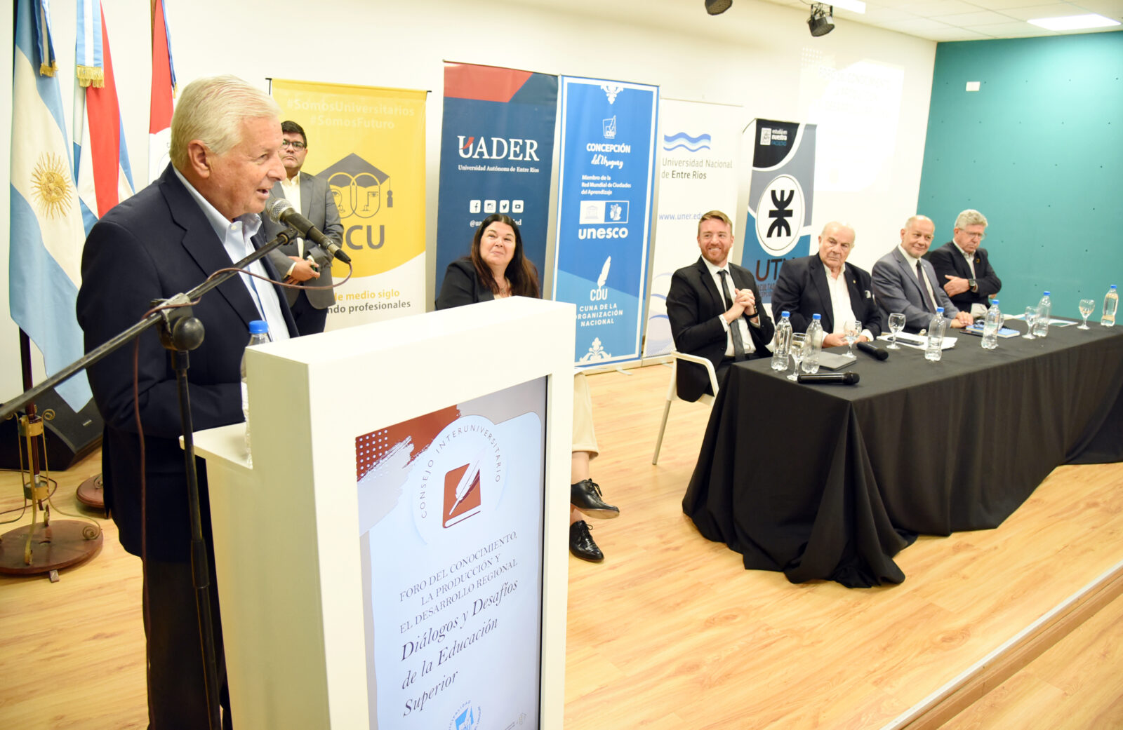 Este martes por la mañana, en el Auditorio Illia, se llevó adelante la apertura del Foro del Conocimiento, la Producción y el Desarrollo Regional, bajo el lema “Diálogos y Desafíos de la Educación Superior”, del cual participaron cuatro de las universidades con sede en Concepción del Uruguay.