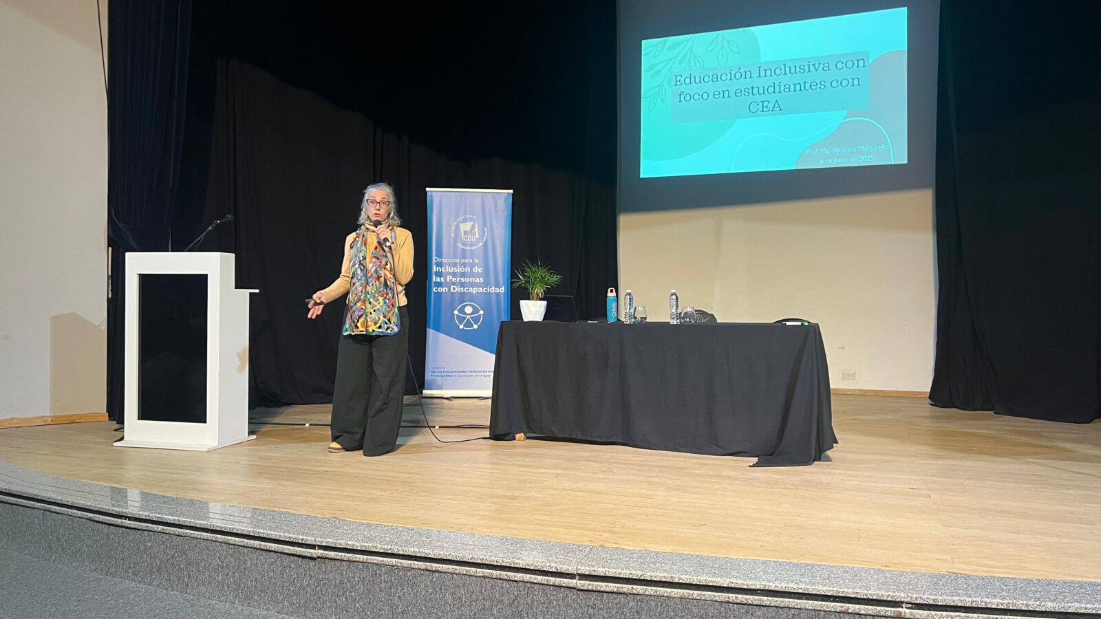 Uno de los momentos más destacados de su exposición fue cuando remarcó que, si bien el foco del conversatorio estuvo puesto en el colectivo de personas dentro del espectro autista, no son los únicos que enfrentan desafíos en el aula. Subrayó que los docentes lidian a diario con las tensiones propias de los tiempos actuales, atravesados por formas de crianza marcadas por ritmos acelerados y exigencias que atentan contra lo humano.