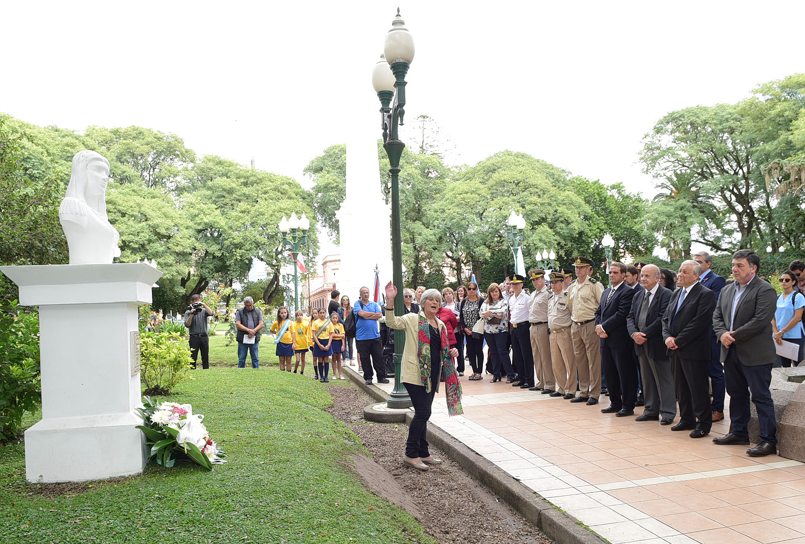 La ceremonia, desarrollada en plaza que evoca la figura del caudillo, tuvo la formalidad de los actos oficiales y el complemento artístico que brindaron “Los Concepcioneros” y la actriz Griselda Gastiasoro.
