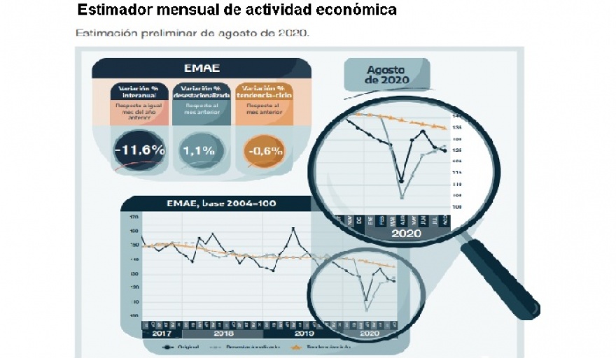 En los primeros ocho meses del año el EMAE acumuló una caída de 12,5% con relación al mismo período de 2019. En la medición de la serie desestacionalizada, el EMAE de agosto mostró un incremento de 1,1% con relación a julio y continuó recuperando parte de la retracción acumulada en el período marzo-abril.