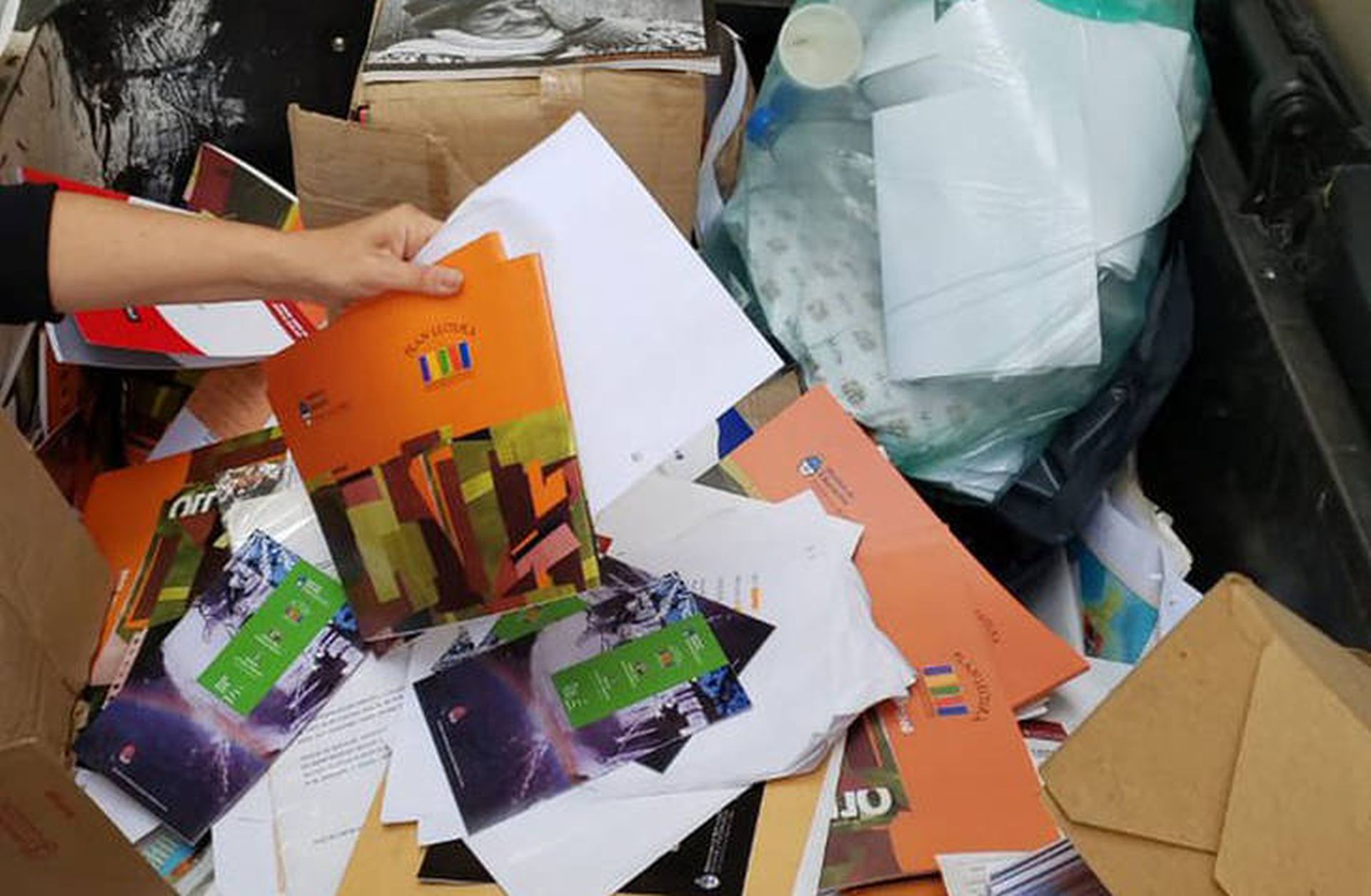 Símbolo de una época que felizmente se acaba: En el Ministerio de Educación tiraron libros a la basura