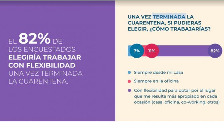 Según una encuesta, un 11% preferiría volver a realizar sus tareas desde la oficina y a un 82% le gustaría tener flexibilidad para optar.
