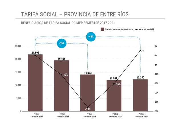 En la primera mitad de 2017, los beneficiarios en Entre Ríos eran 21.802, por lo que cuatro años después, el beneficio actual alcanza a la mitad de los entrerrianos que en cuatro años antes, pese al incremento de las boletas, la crisis económica y social y el retroceso de ingresos en los sectores medios y bajos.