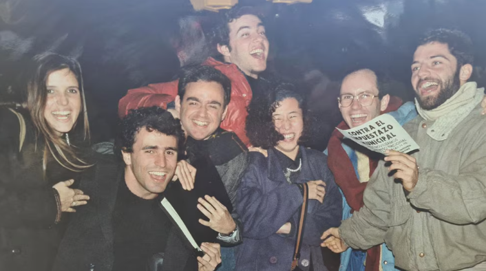 Por las noches si salíamos, llevaba mi raqueta de squash por si se nos venía encima uno de los zombies que se inyectaban heroína en los bordillos y apoyaban la cabeza en los paragolpes de los autos. Me presentó a su amiga y entre las dos me presentaron a Juan Luis Guerra. Bailamos los tres nuestra juventud en una Madrid que veía apilarse las hojas de la interminable tesis de mi amiga.