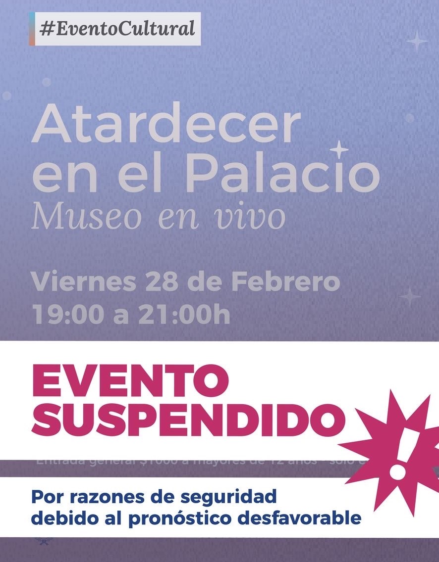 Desde el Palacio San José Museo y Monumento Histórico Nacional Justo José de Urquiza, informamos que la actividad «Atardecer en el Palacio», programada para el viernes 28 de febrero, ha sido suspendida debido al pronóstico desfavorable.
