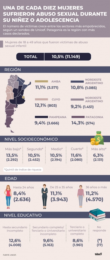 El 11% de las mujeres de 18 a 49 años en Argentina declararon haber sido víctimas de abuso sexual durante su infancia...