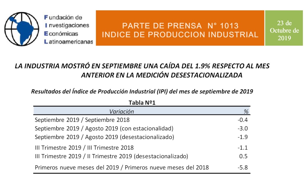 By La Ciudad07/11/2019En el mes la baja fue de 1,9%. El ciclo recesivo es el más largo desde el iniciado en noviembre de 1999. La...