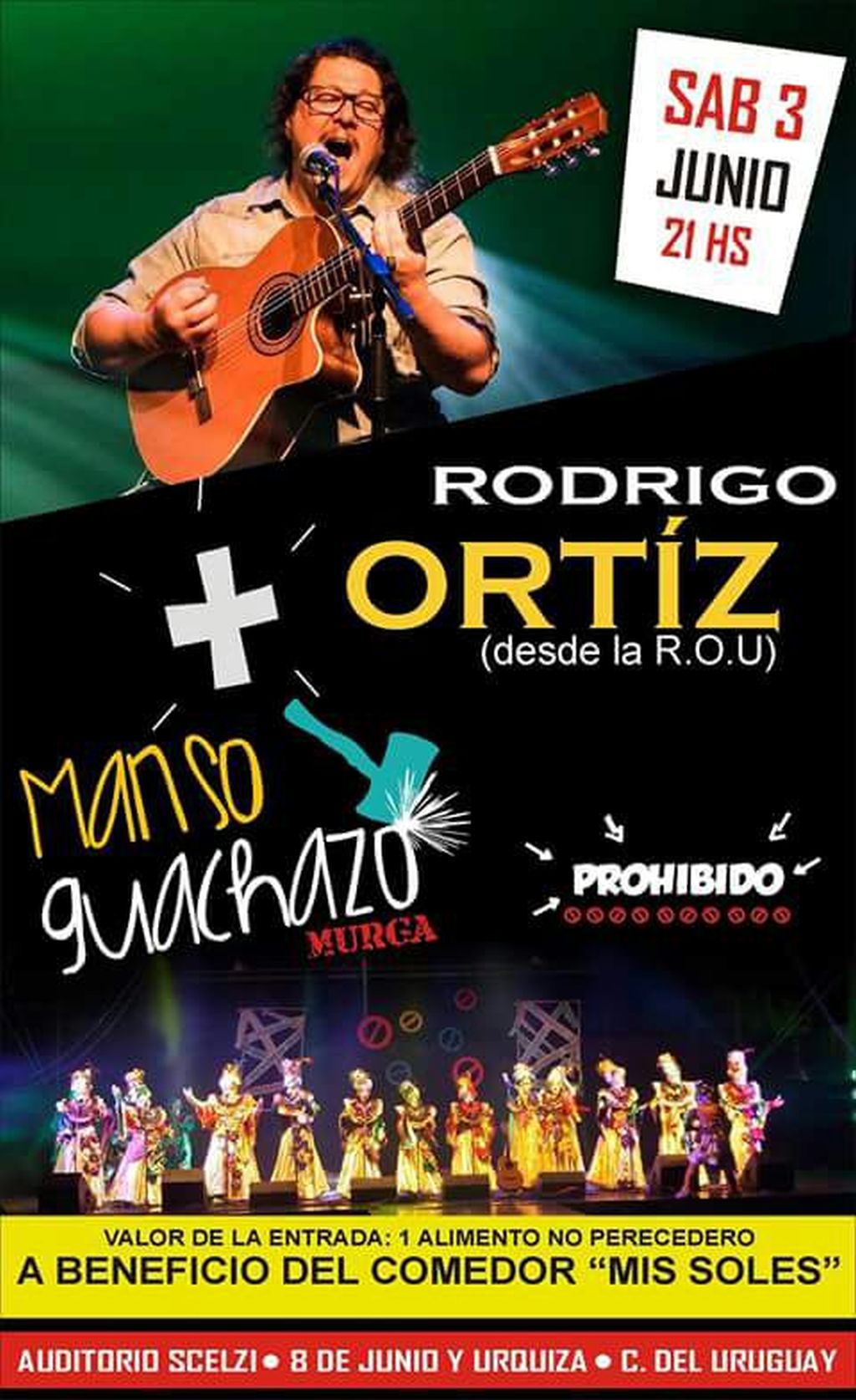 By La Ciudad07/06/2017Murga solidaria La murga “Manso Guachazo” y el artista uruguayo Rodrigo Ortíz actuarán este sábado, desde las 21 en el Auditorio Municipal “Carlos...