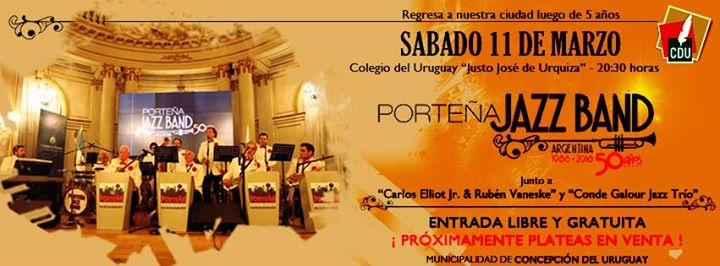 By La Ciudad09/03/2019Como parte del ciclo cultural organizado por la Municipalidad, la “Porteña Jazz Band” actuará el sábado 11 de marzo, desde las 20.30 en...