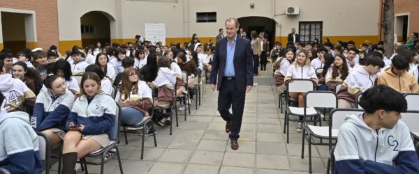 El mandatario estuvo este lunes en la escuela Secundaria Nº 17, General Martín Miguel de Güemes, de Concordia. Junto a la presidenta...