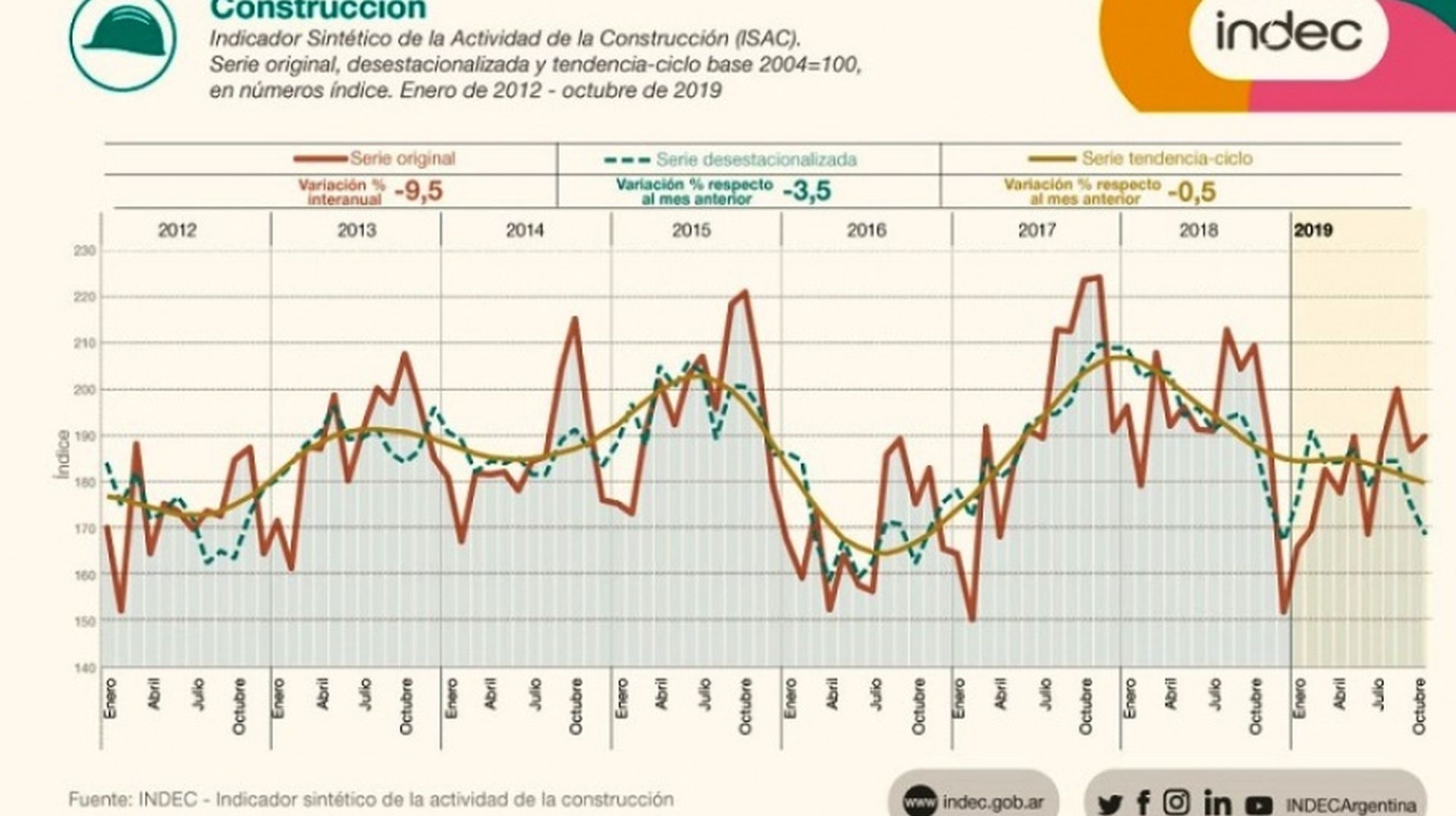By La Ciudad20/11/2019Según los datos oficiales, sigue en caída libre la economía argentina. El fracaso de Macri. El Indec confirmó los peores pronósticos: la construcción cayó...