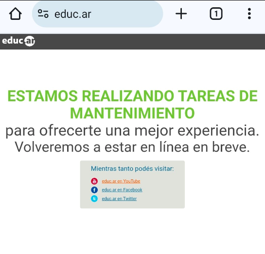 Hoy si se quiere entrar aparece la leyenda «Sitio en mantenimiento». Argumentan que volverá a estar en línea «en breve». Creada hace...