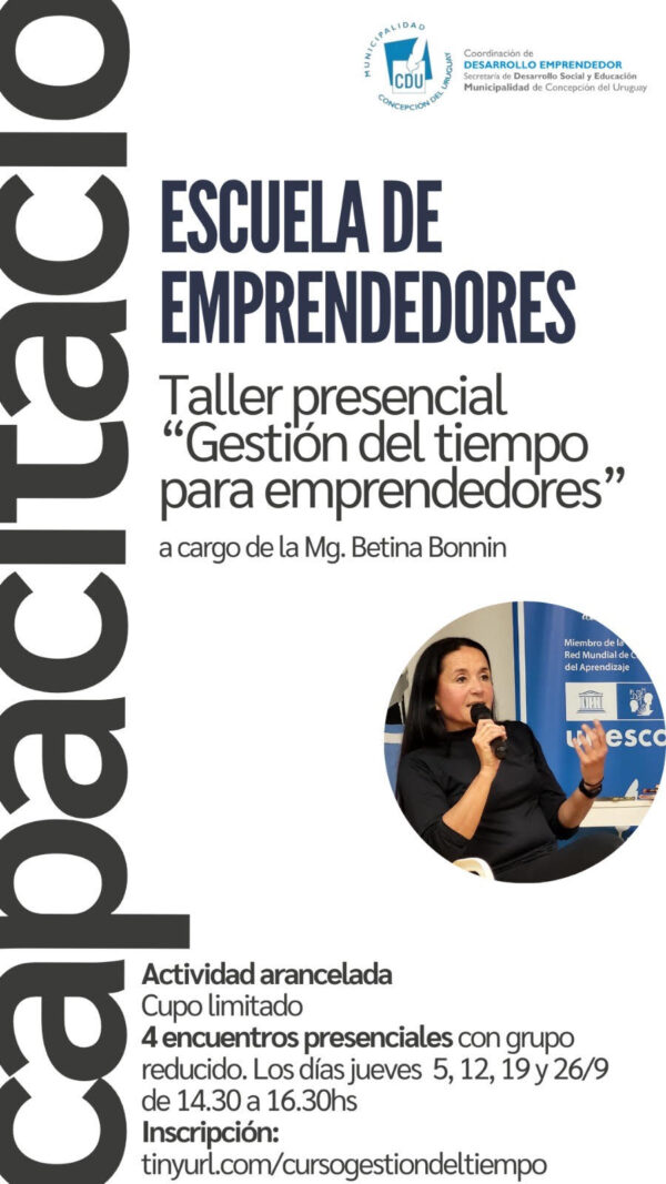 El Martes 19/9 de 9 a 11.30hs , en el Auditorio Municipal “Arturo Illia”, San Martín 697, subsuelo – Concepción del Uruguay...