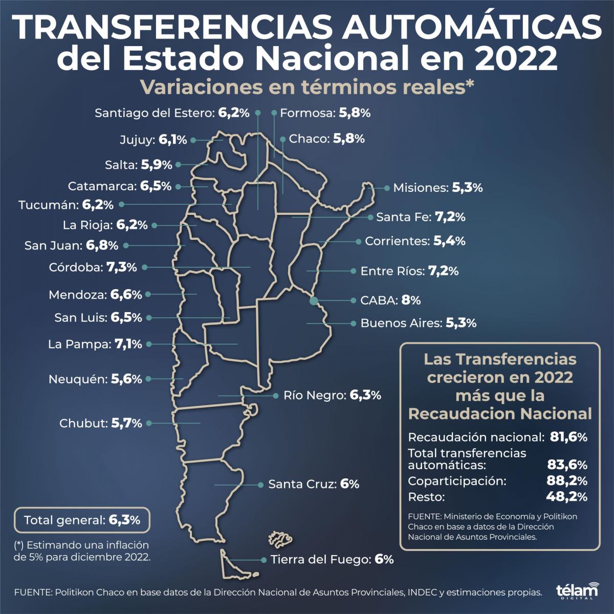 By La Ciudad20/01/2023Las transferencias automáticas de recursos del Estado nacional a las 23 provincias y la ciudad de Buenos Aires ascendieron en todo 2022 a 6...
