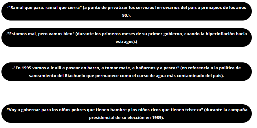 El fallecido expresidente y exsenador nacional Carlos Menem pronunció algunas de las frases que quedaron en la historia de la política argentina,...