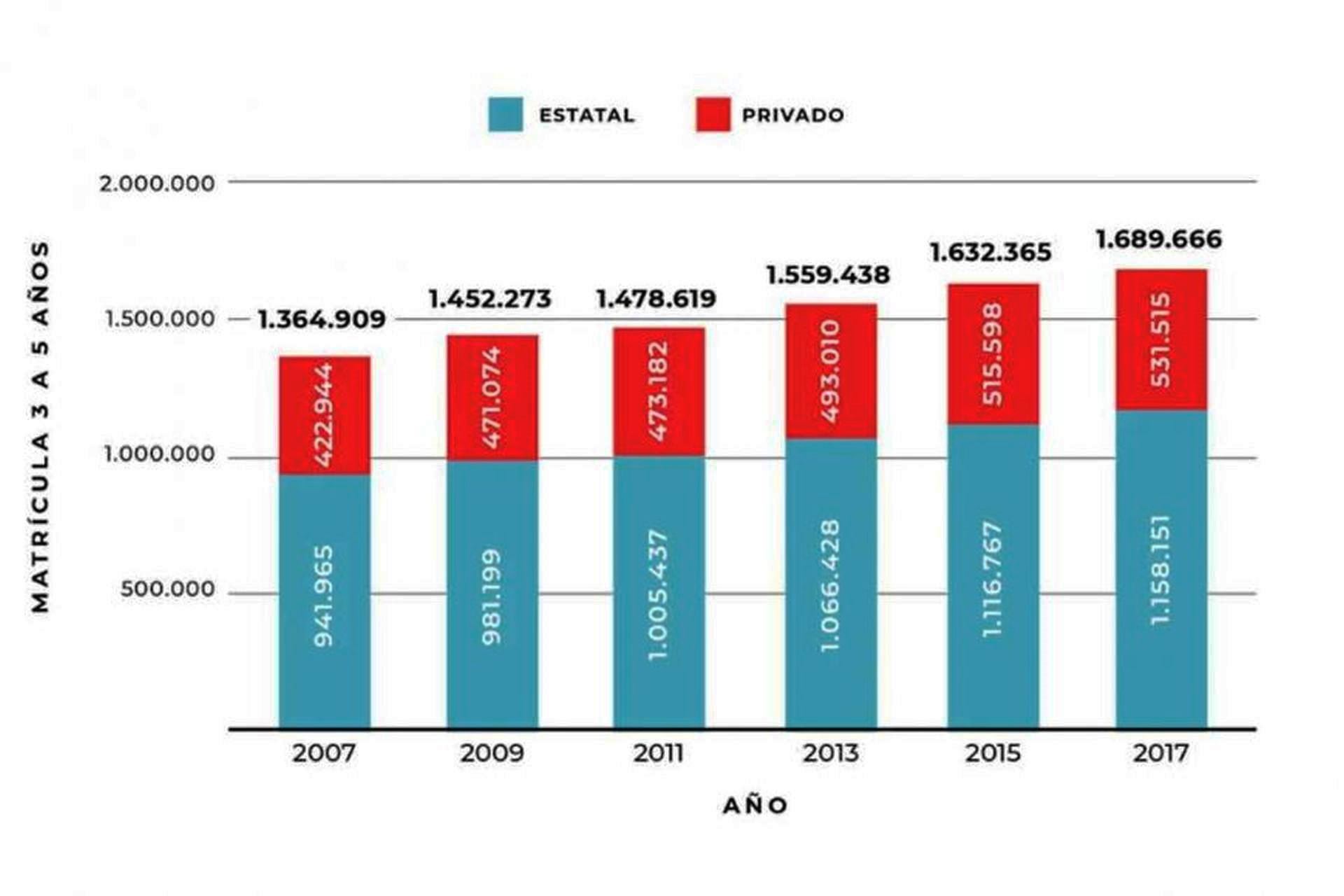 By La Ciudad07/08/2021El número de estudiantes en las salas de 3 a 5 años paso de 1.364.909 a 1.689.666 entre 2007 y 2017. En este...