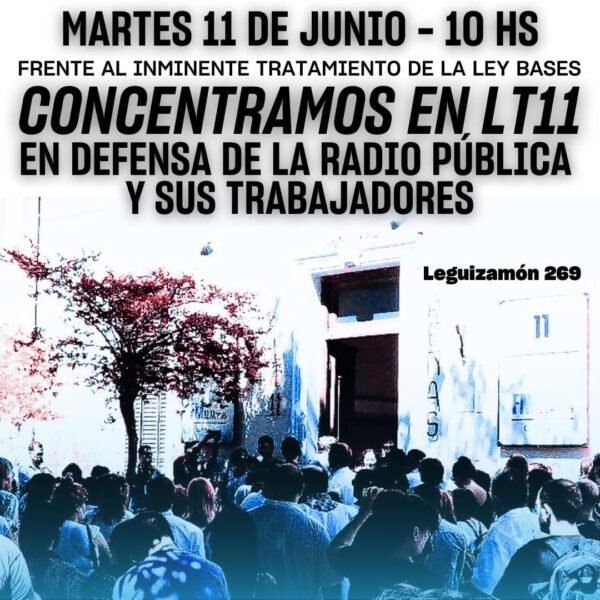By Leo Iglesias03/08/2024Las y los trabajadores de LT11 los invitamos a concentrar este martes 11 de junio desde las 10 Hs. en la puerta de...