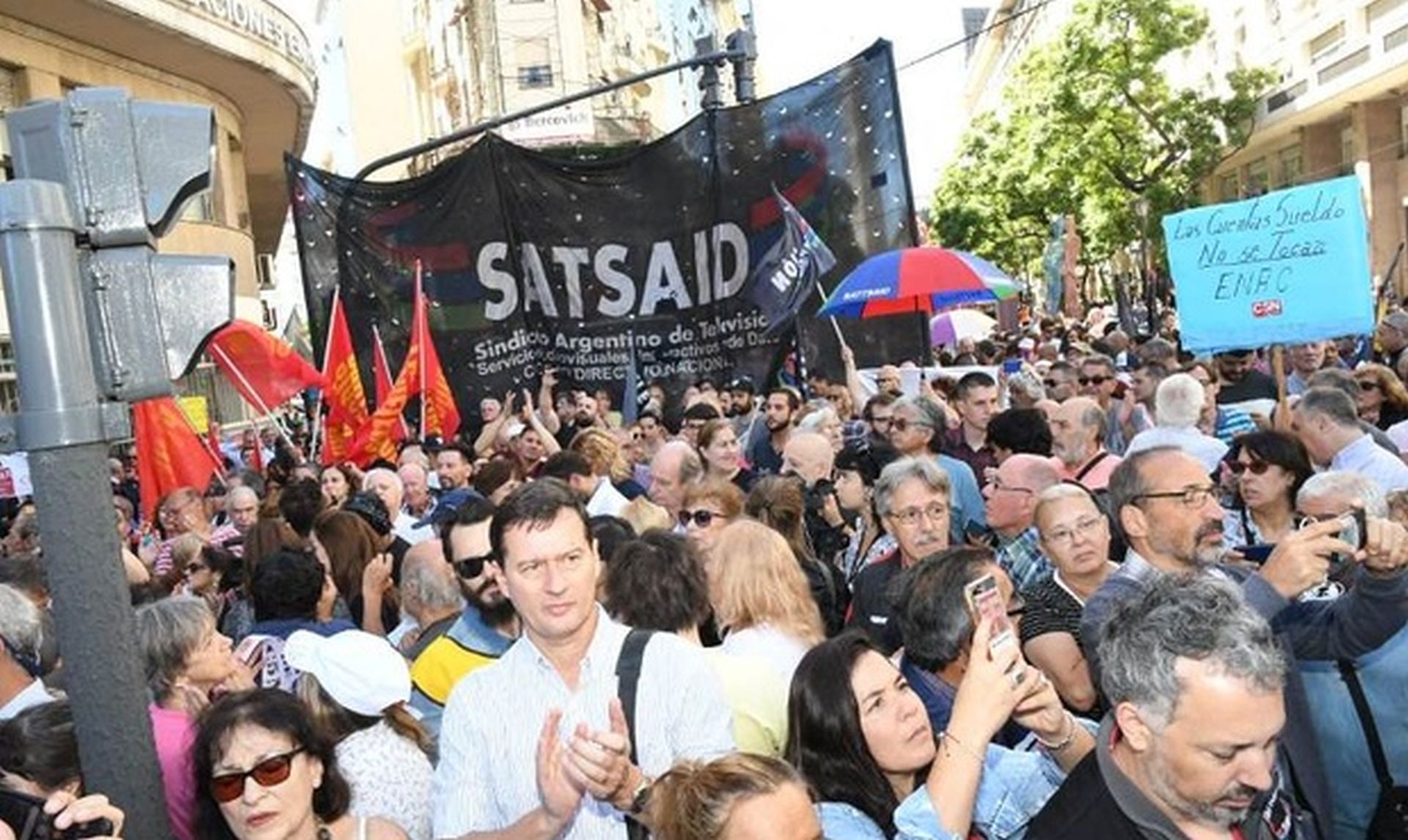 By La Ciudad17/06/2019El SATSAID llevó a cabo este viernes una masiva movilización a la puerta de la Cámara Nacional de Apelaciones en lo Comercial en...