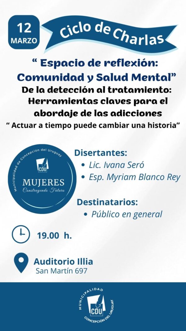 La Municipalidad de Concepción del Uruguay, en el marco del programa “Mujeres Construyendo Futuro” y junto al Instituto de Psicología y Psicoanálisis, invita...