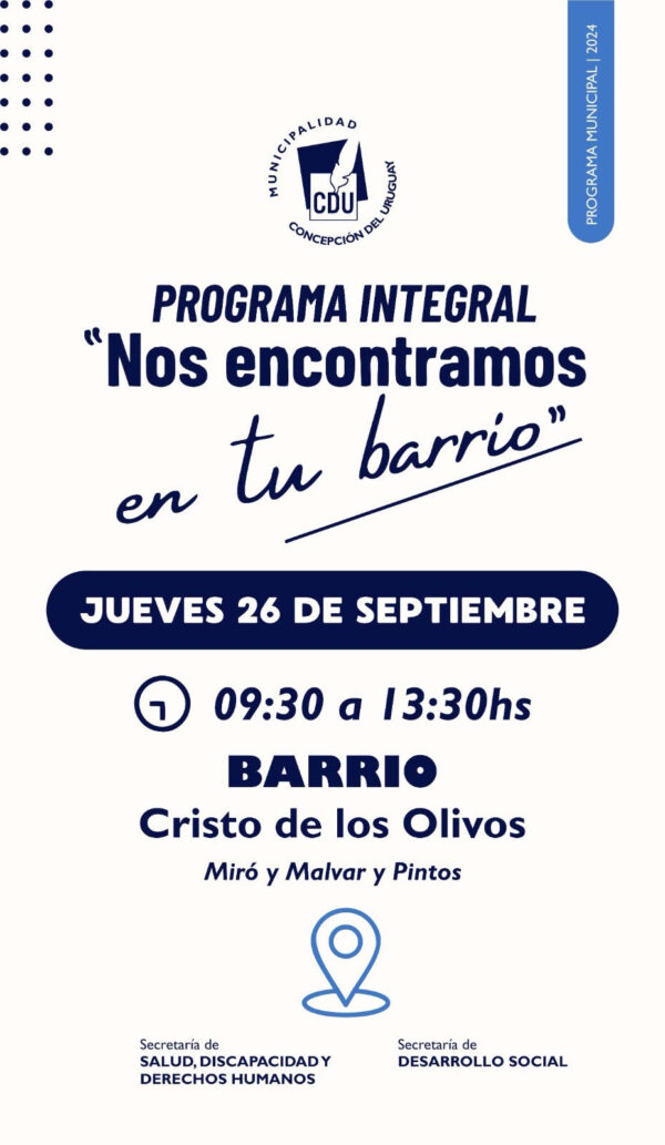 By Leo Iglesias26/09/2024Este jueves 26 de septiembre, se llevará adelante un nuevo abordaje del Programa Integral “Nos Encontramos en tu Barrio”. En esta ocasión, la...