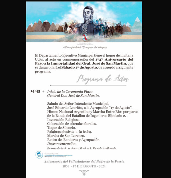 By Leo Iglesias19/08/2024Este sábado, se conmemoró a nivel nacional el Paso a la Inmortalidad del Gral. José de San Martín. En este sentido, en Concepción...