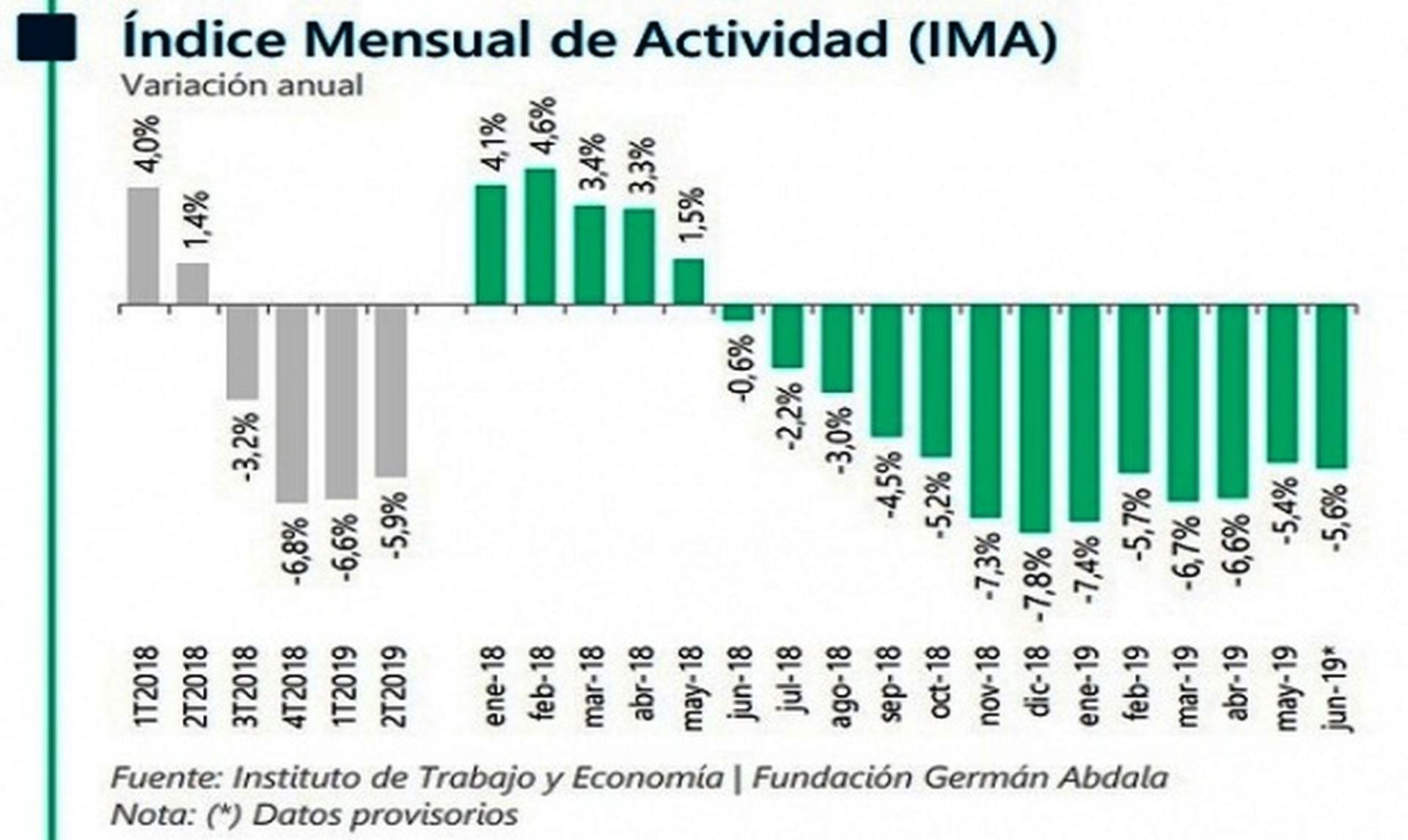 By La Ciudad04/08/2019En junio la economía se contrajo un -5,6% respecto del mismo mes de 2018, consolidando el piso de la actividad sin vistas de...